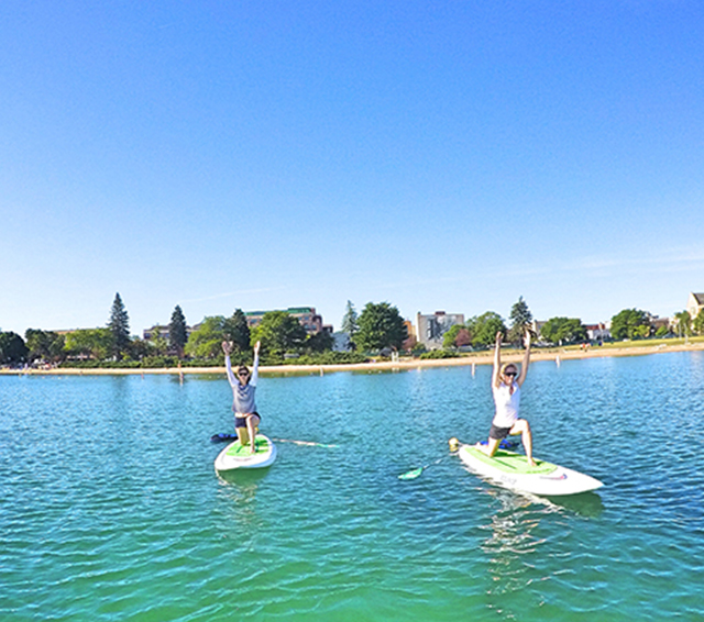 Our beach yoga class will take place on the patio at Clinch Park at 7:45am. Yoga is a great way to kick off your fun filled weekend in Traverse City.