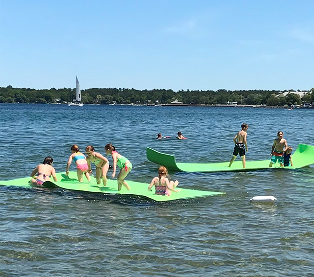 Mats are easily maneuvered and provide a wonderful water experience. So, come and enjoy the water on one of our big blue mats!